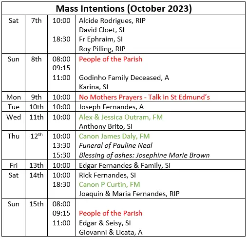 Concert in aid of SVP and the Widows and Orphans of Rural Kenya. St. Edmund Campion Church. Tickets @ £12 includes a glass of wine /soft drink, ½ price for 12-18 years old, free for children under 12. Tickets available from https://rmvc.net/october/ or from John Carr. Both charities are close to the hearts of the St. Edmund Campion parish community.